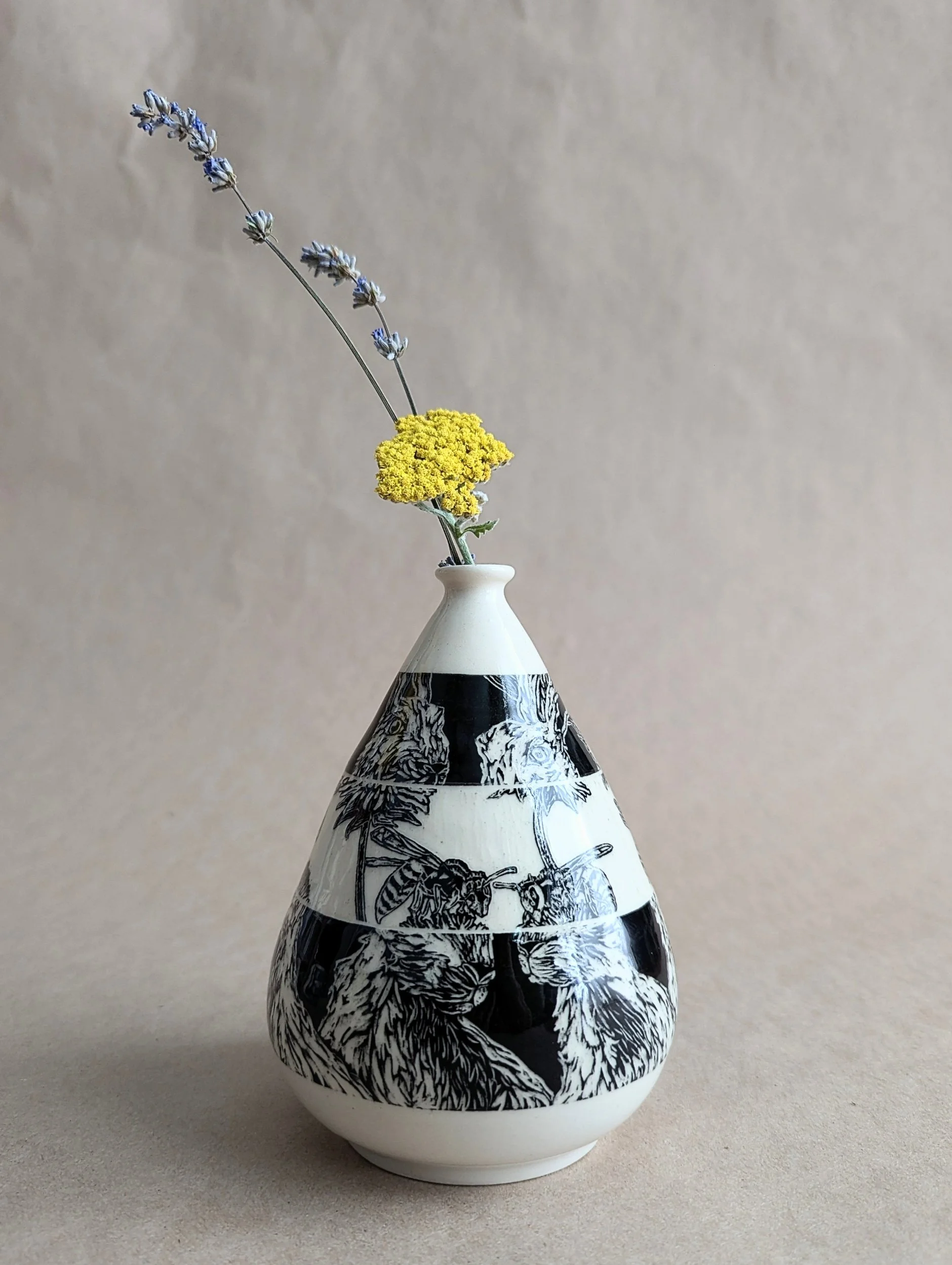 My work is an exploration of how details shape the stories we tell. I am interested in how our perspective creates the basis for what we understand to be true and how that can change. Whose voice is telling the story? What values are communicated by how we tell the story? What details are excluded to shape the truth we want? I approach these questions through carved illustrations on functional ceramics. I think about characters in the margins or details that may be overlooked such as critters underneath leaves or crawling in the undergrowth. My illustrations include rabbits, wasps, snails, and rats - all common creatures that we imbue with meaning based on our perspective, our values, and what we want from the world around us. Some illustrations have a sparse background, putting the focus on what I have included. Others have layers or forms where there are places for things to be hiding and details that can change how we understand the story being told.